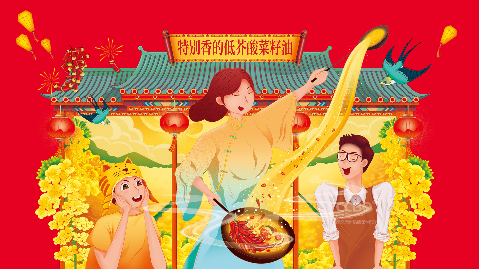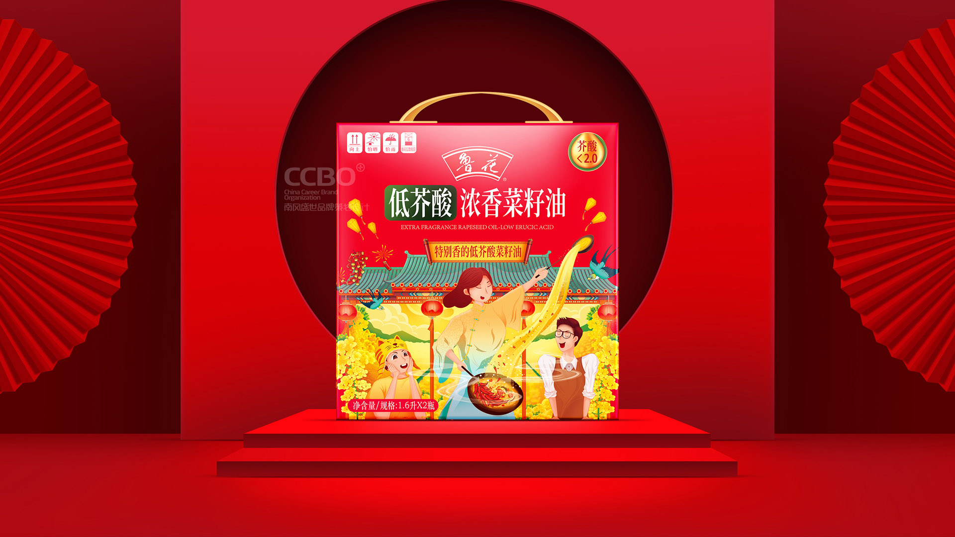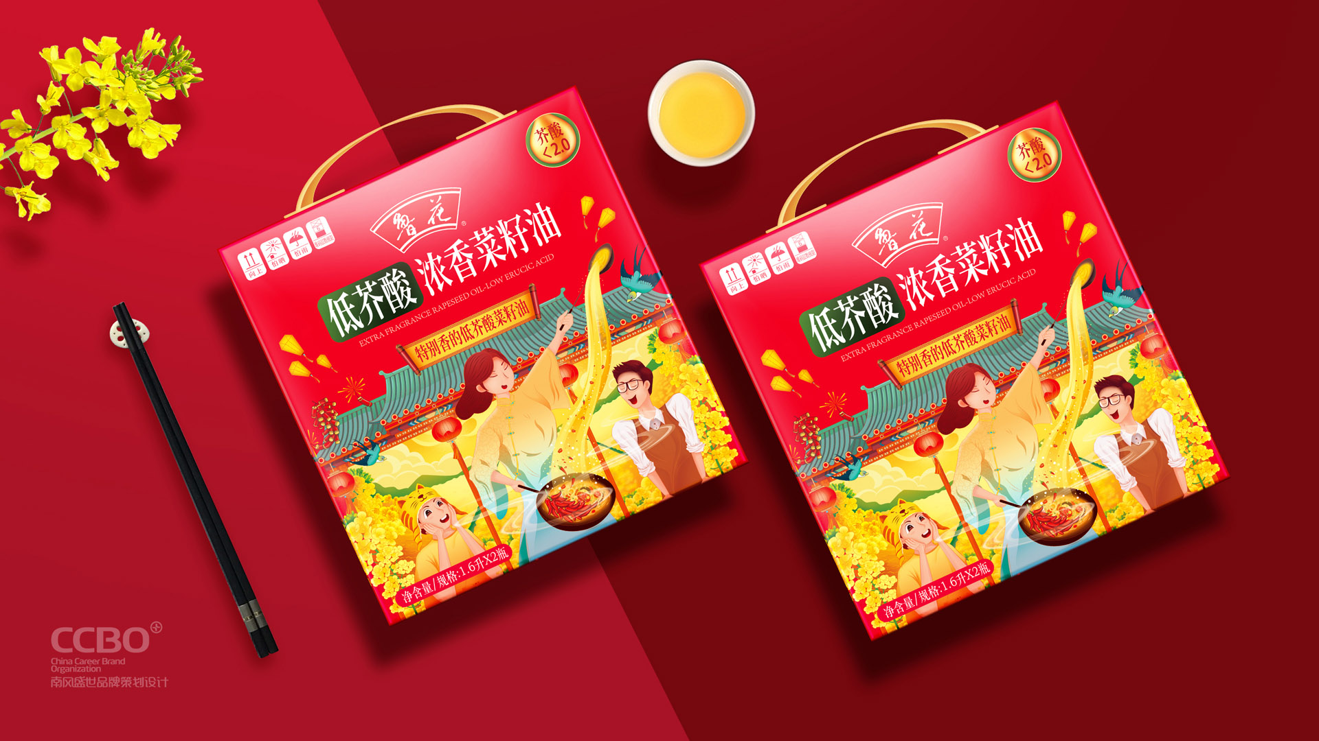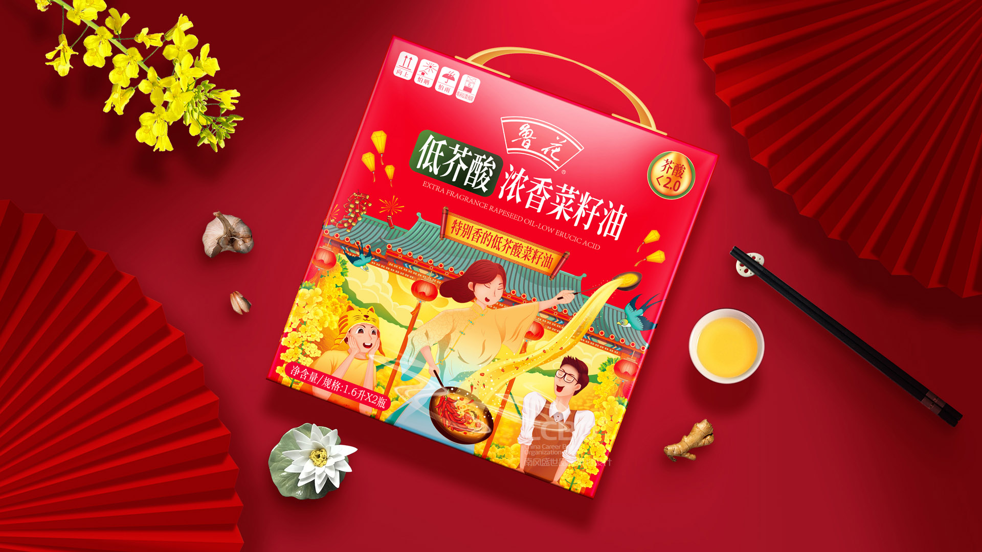 南風盛世濟南食品VI設計公司通過市場上的各種分析,然后對菜籽油進行群體分類,針對年輕的有品質的群體,以香飄左鄰右舍的概念把香氣的感染力表達出來,同時在禮盒食品包裝設計的標題和畫面增加活力感,能讓人一眼辨別是糧油禮品。畫面通過繪畫的手法,把中國文化與中國好鄰居的氛圍營造出來,走親訪友就送魯花低芥酸濃香菜籽油。