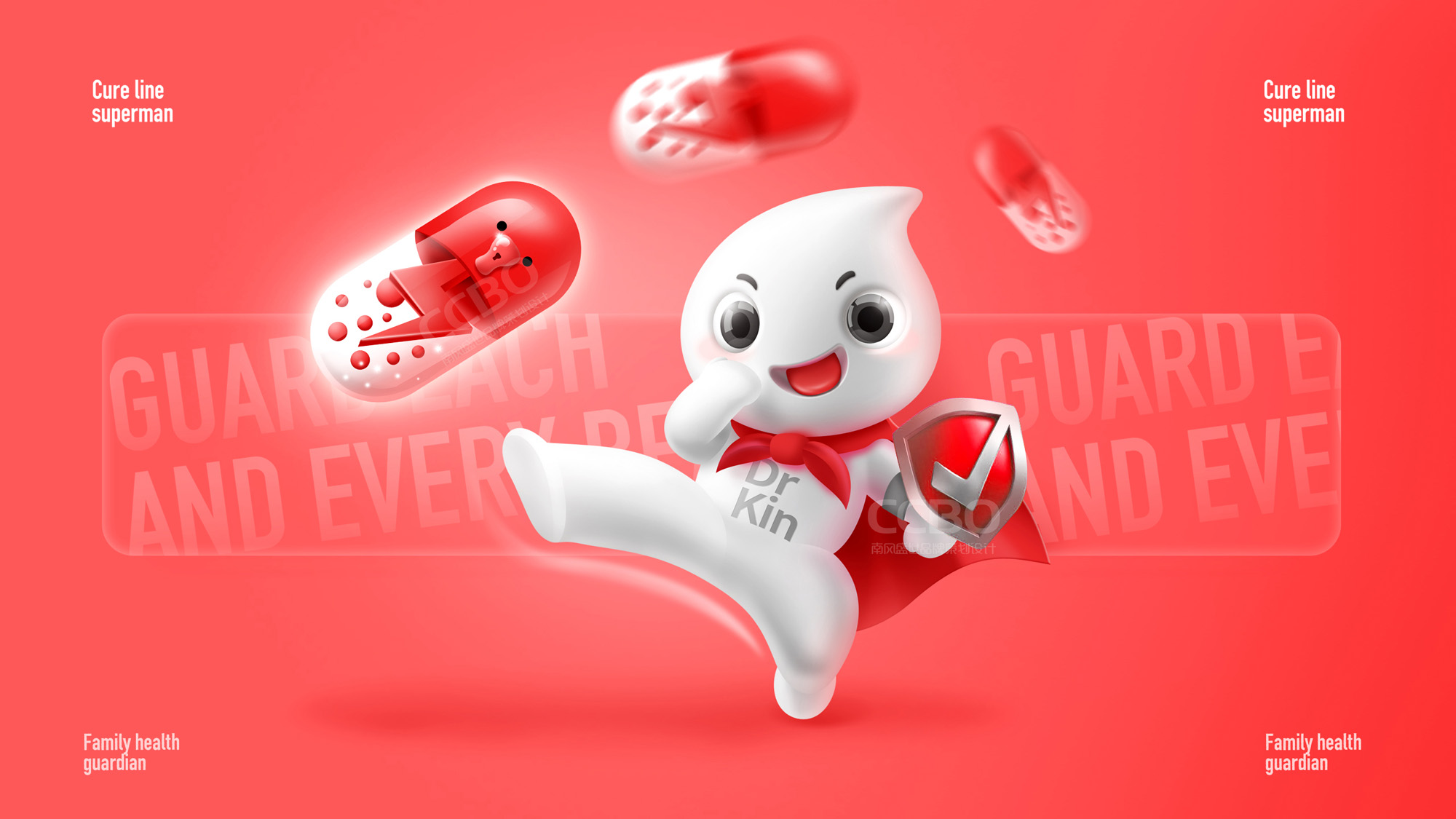 深圳廣州專業卡通吉祥物設計公司南風盛世選用藥丸等元素塑造了可愛、健康、陽光的吉祥物形象,賦予活潑、智慧、可愛的性格特點。增強了品牌的活躍度。