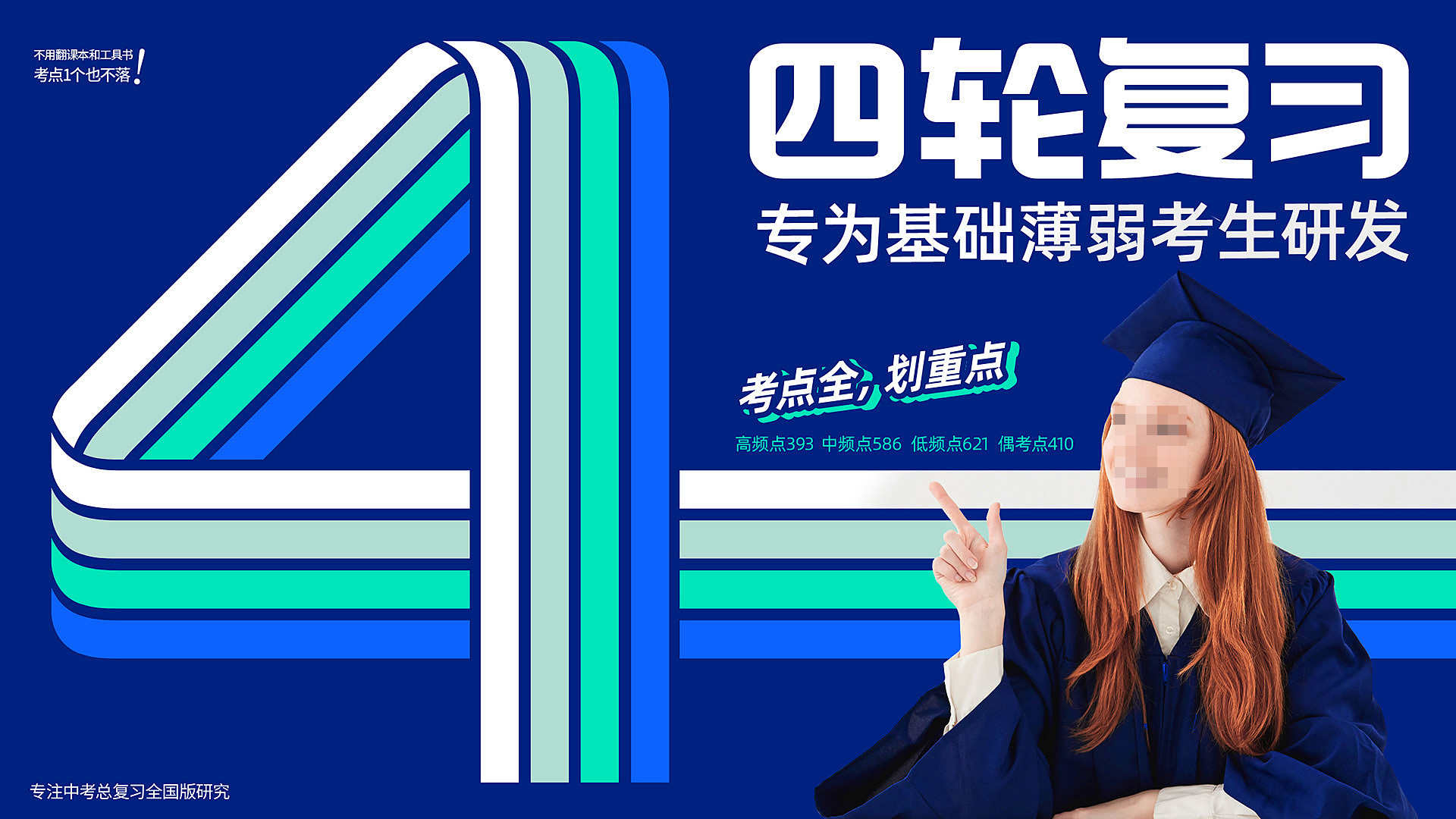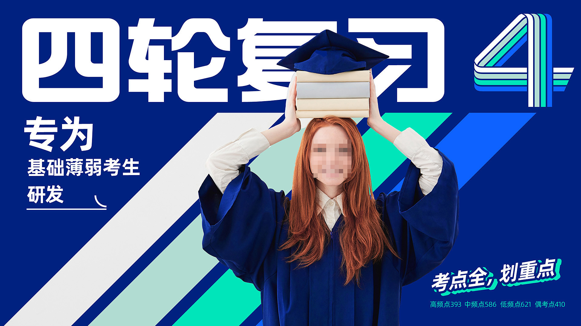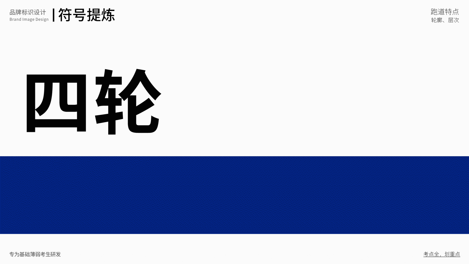 四輪復(fù)習(xí),結(jié)合品牌名稱“四輪 ”,用“4”這個(gè)數(shù)字來表達(dá),4條跑道,4輪復(fù)習(xí),形象生動(dòng)的場景畫面,讓視覺錘非常具備捶打力。數(shù)字是人類記憶最快速的信息,比圖像來記憶效率更高。4輪復(fù)習(xí)的數(shù)字“4”在書封放大化后,對視覺產(chǎn)生強(qiáng)烈的刺激,從而捕獲消費(fèi)者的注意力,搶奪認(rèn)知資源,并且能夠快速的在貨架競爭中跳出來,獲取優(yōu)先被選擇購買的可能。